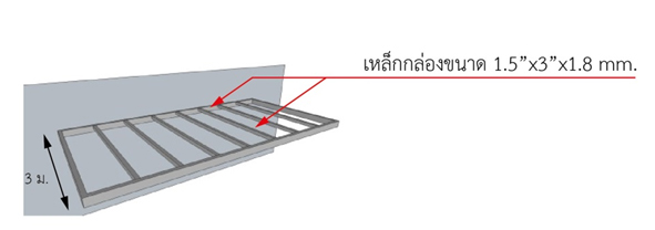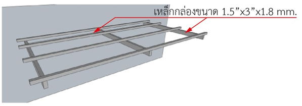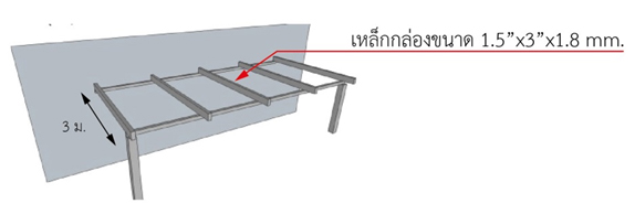 - กันสาดยื่นน้อยกว่า 2 เมตร แปใช้เหล็กกล่องขนาด 1.5″x1.5″x1.8mm.