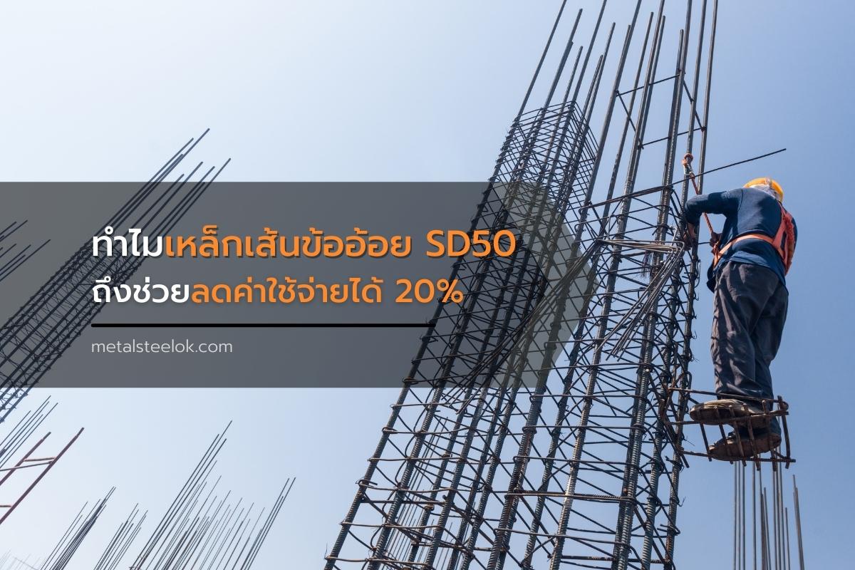 และเมื่อเหล็กเส้นข้ออ้อย SD50 รับแรงดึงได้มากขึ้น ผู้รับเหมาก็สามารถลดปริมาณเหล็กเส้นลงได้ และช่วยลดต้นทุนราคาเหล็กเส้น ค่าผูก ค่าขนส่ง พร้อมทั้งยังช่วยให้งานผูกเหล็ก เทคอนกรีต ง่าย และรวดเร็วมากยิ่งขึ้น แต่ในขณะเดียวกันก็ยังคงคุณภาพตามมาตรฐานเหล็กเส้นข้ออ้อยได้อย่างดีเยี่ยม เพราะแบบนี้จึงทำให้เหล็กเส้นข้ออ้อยสามารถช่วยลดค่าใช้จ่ายได้ถึง 20 %