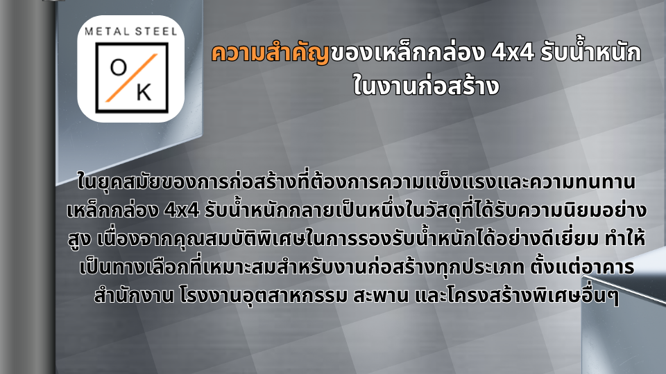 ในยุคสมัยของการก่อสร้างที่ต้องการความแข็งแรงและความทนทาน เหล็กกล่อง 4×4 รับน้ำหนักกลายเป็นหนึ่งในวัสดุที่ได้รับความนิยมอย่างสูง เนื่องจากคุณสมบัติพิเศษในการรองรับน้ำหนักได้อย่างดีเยี่ยม ทำให้เป็นทางเลือกที่เหมาะสมสำหรับงานก่อสร้างทุกประเภท ตั้งแต่อาคารสำนักงาน โรงงานอุตสาหกรรม สะพาน และโครงสร้างพิเศษอื่นๆ