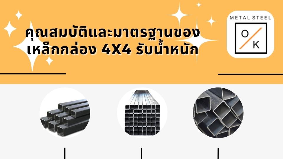 เหล็กกล่อง 4×4 รับน้ำหนักผลิตจากเหล็กกล้าคุณภาพสูง มีค่าความแข็งแรงดึงสูงประมาณ 350-550 เมกะปาสกาล สามารถทนแรงอัดได้ดีเยี่ยม มีความต้านทานการขึ้นสนิมและการกัดกร่อนที่ดี เนื่องจากมีการเคลือบผิวด้วยสารกันสนิมหรือสารเคลือบอื่นๆ